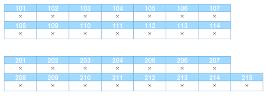 〇=空室 △=予約中 X=入居済み 空き室状況は施設へお問い合わせください。